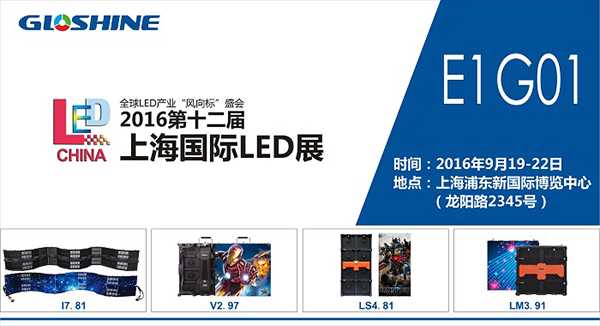 時光飛逝,一轉眼又到金秋,備受行業矚目的2016年第十二屆上海國際LED展(簡稱“LED CHINA2016”)將于9月19日-22日在上海國際博覽中心拉開帷幕?!癓ED CHINA” 是全球最大、最具影響力的LED產業盛會,也是全球LED行業的“風向標”。作為國內LED顯示屏行業杰出的代表,屆時光祥科技將攜LM3.91、LS4.81、I7.81、V2.97 等多款高端產品亮相本屆上海LED展,在此,光祥科技誠邀您前來E1館G01展位進行探討交流,共同體驗光祥LED顯示屏所帶來的視覺盛宴。