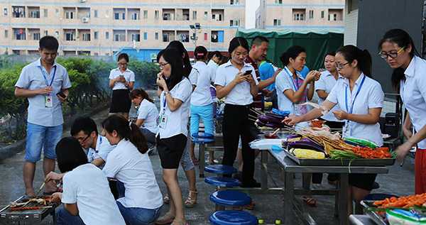 瞅,在整個燒烤活動中,還有一群人,他們手拿著啤酒瓶,在整個燒烤現場來回穿走,他們是在干嘛呢?“來,一起干” !循聲望去,嘿,看到了,原來他們是在給每桌的同事敬酒呢?