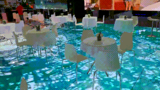 展位洽談區地面,大面積使用AR黑色地磚屏。地屏平整如鏡,鋼化玻璃面罩,耐損耐壓強,超強負荷展會人流,帶來新穎別致的科技體驗,適宜大規模運用于舞臺或其他特定場所。
