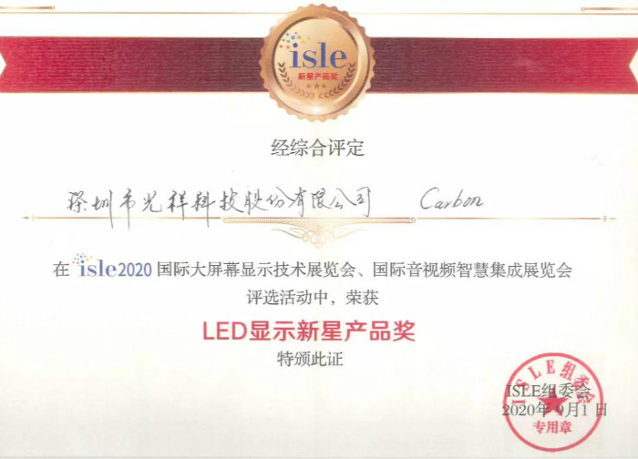 作為專業參展商,光祥ISLE展位亮點十足,新品好評如潮。光祥Carbon系列在一眾租賃展品中,表現出圈,得到展會專家評審團的一致認可,幸運斬獲2020 ISLE“LED顯示新星產品獎”殊榮。