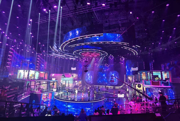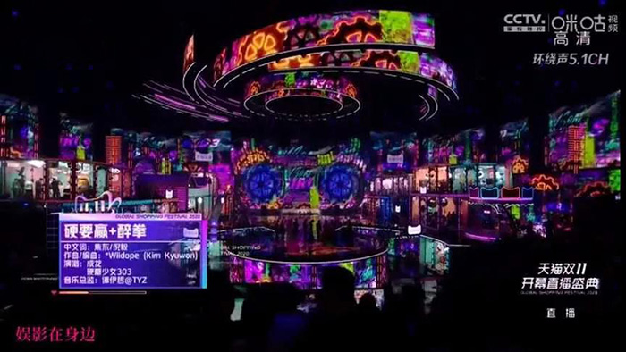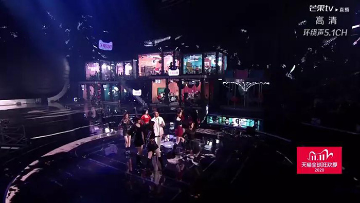 湖南衛視搬出最強舞臺陣容,天貓搬出最火直播間,光祥搬出頂尖的科技,17個直播間被搬上舞臺。17個直播間,17塊小型LED顯示屏,連接舞臺主屏。藝人自由穿梭于各大直播間,與主播的互動,全部實時呈現觀眾眼前。