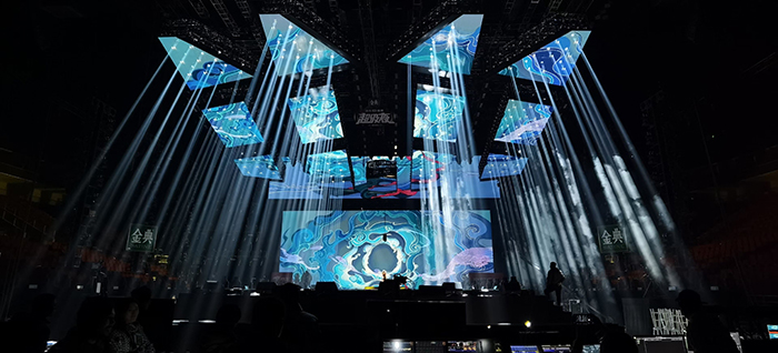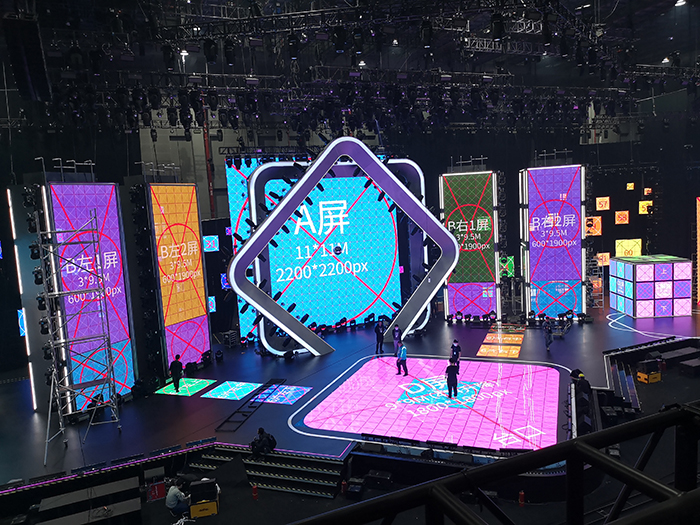 光祥AR、ZE、LC系列完美控場,以地屏、立方屏等造型亮相晚會,多元演繹脫口秀、街舞、說唱等時下火熱文化,嗨爆全場。