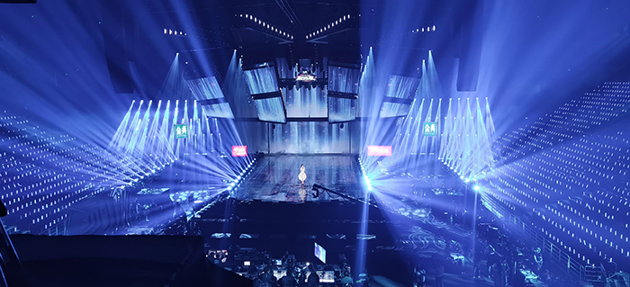 京東大制作,大手筆,將頂級的live現場搬到所有消費者眼前。為了讓直播體驗更加沉浸式,在舞臺效果方面,采用超400㎡光祥LC透明屏、220㎡AR地屏,結合數控飛屏、矩陣燈光的多種組合,營造燃炸的舞臺特效,體現豐富的空間層次變化。