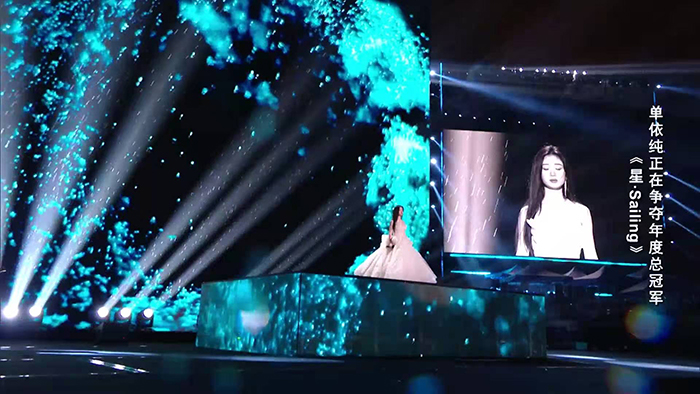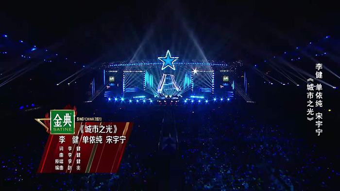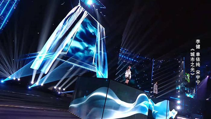 當晚,江城飛歌,長江兩岸星光璀璨。1250㎡光祥LC系列冰屏、224㎡光祥戶外P3系列顯示屏,搭載升降舞臺,矩陣分列,激情演繹荊楚大地的清奇、靈動。