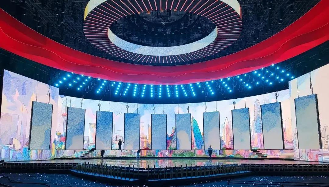 光祥 P 3.47屏幕作為晚會主屏,以超清的畫面、穩定的顯示和鮮明的色彩,為全國觀眾奉獻一場“百年征程風正勁,接力奮斗再出發”的畫卷。高科技視聽技術的融入充分迸發出舞臺的表現力,實景拍攝與虛擬視聽技術相融合,打造出身臨其境的舞臺效果。一場跨越時空的旅程擊碎時空屏障,穿越風雨征途,見證百年芳華。