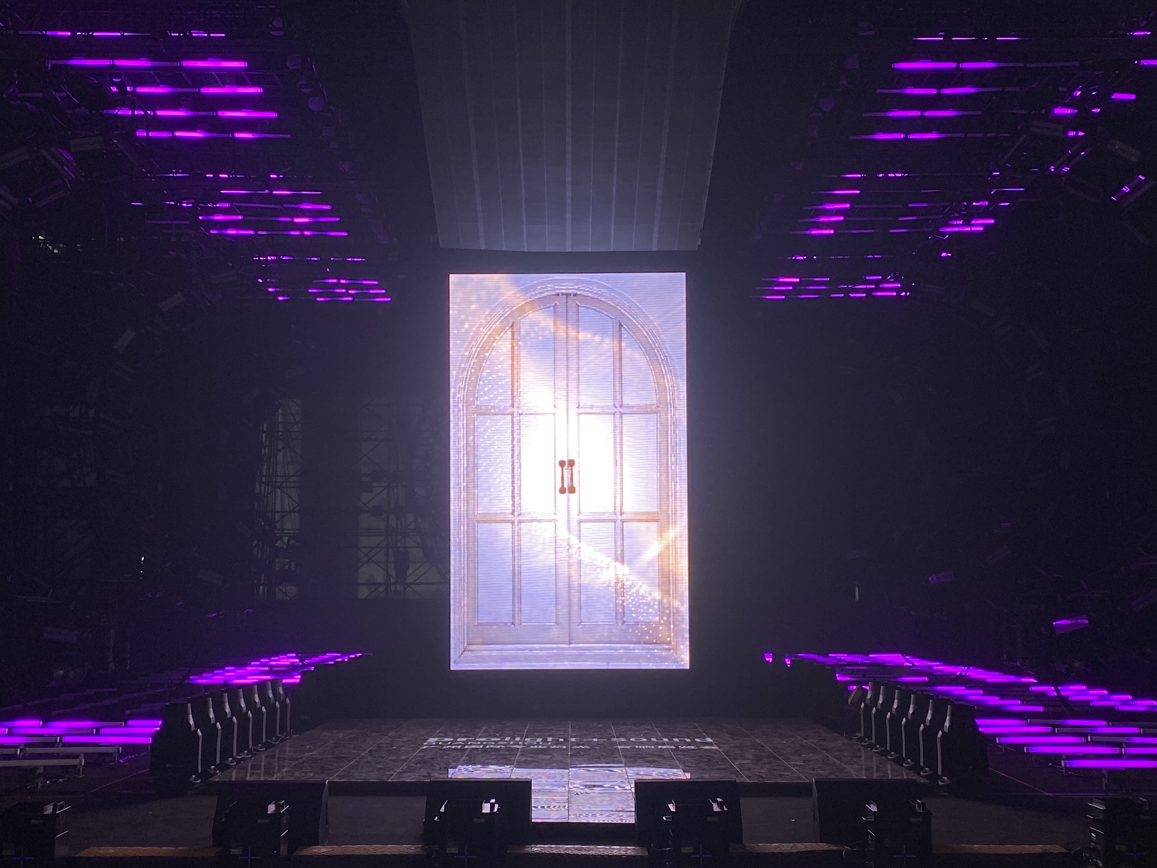 舞臺秀上空使用光祥VA系列LED顯示大屏,輕盈通透的特性,讓時空隧道更具神秘色彩,詮釋人類對于時空的認識和思考。減輕舞臺負重感的同時,也帶給觀眾無盡的想象空間。