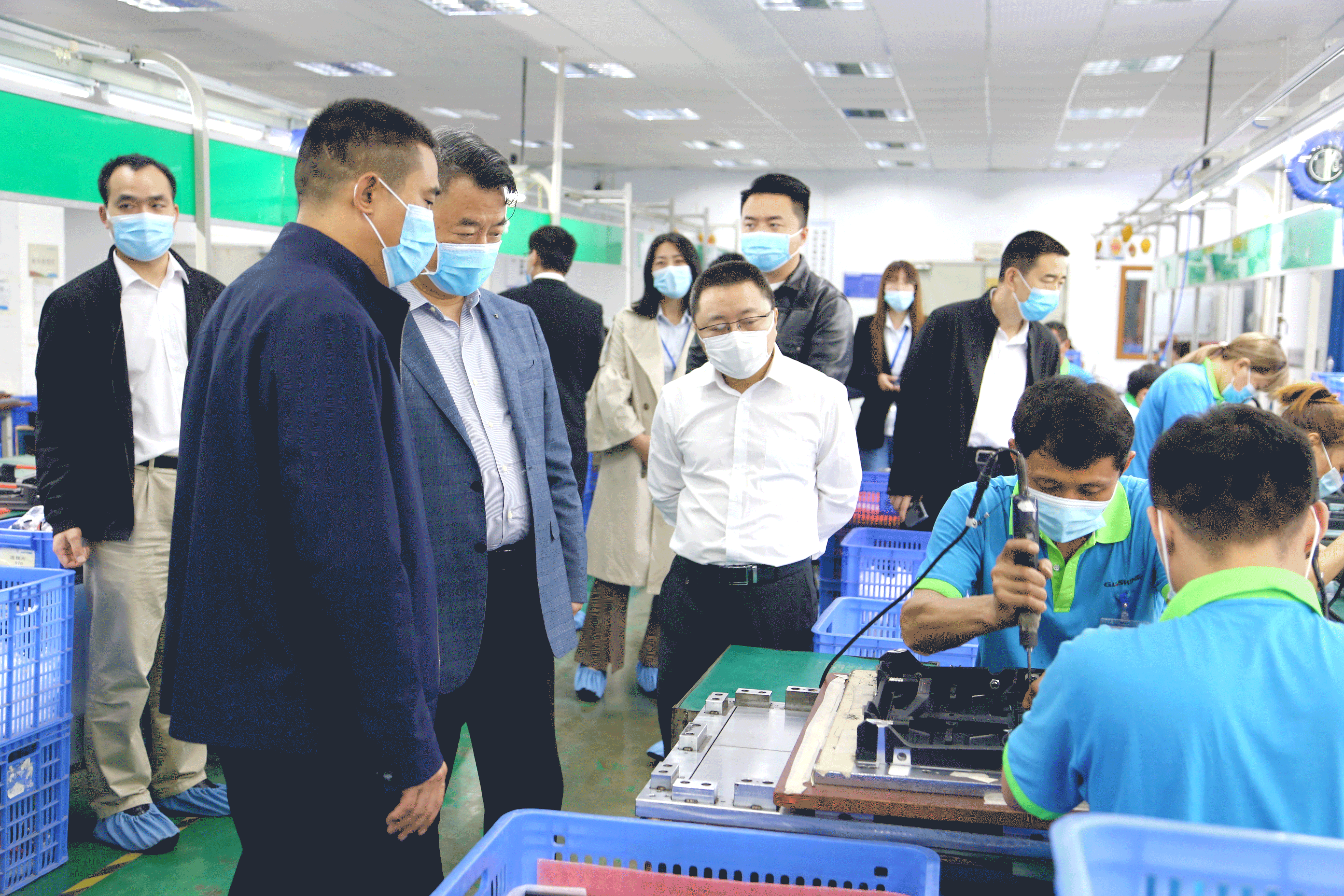 3月25日,區委副書記、政法委書記孫仲勇、區文化廣電旅游體育局分管負責人,區投資推廣和企業服務中心相關負責人、坪地街道分管負責人黃敬順書記等一行蒞臨光祥科技參觀指導,在公司董事長張現峰、總經理張永軍等人的陪同下深入生產車間現場參觀考察各項工作。