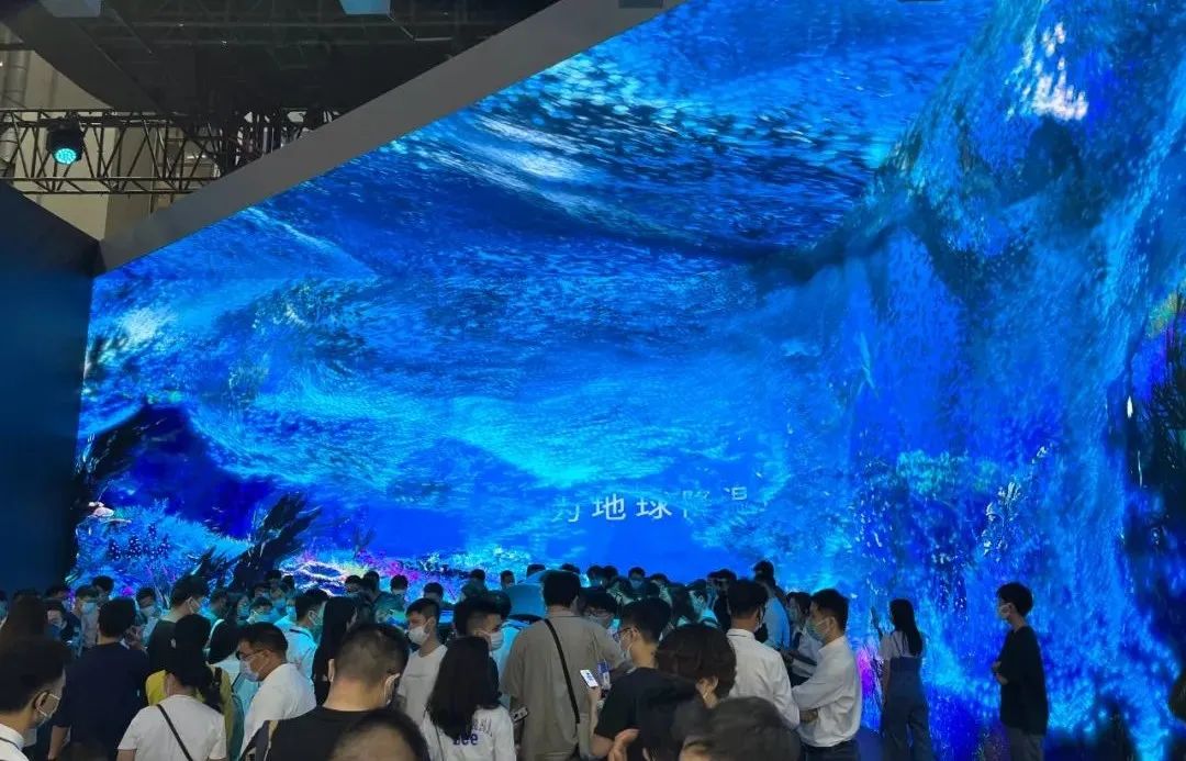 展會現場五光十色、異常火熱,但站在比亞迪展臺上,宛如置身于海底世界,魚群從身邊游過,海草隨浪起舞,艷麗的珊瑚點綴其中,紋路細膩可見,仿佛觸手可及,陣陣清涼縈繞身旁。