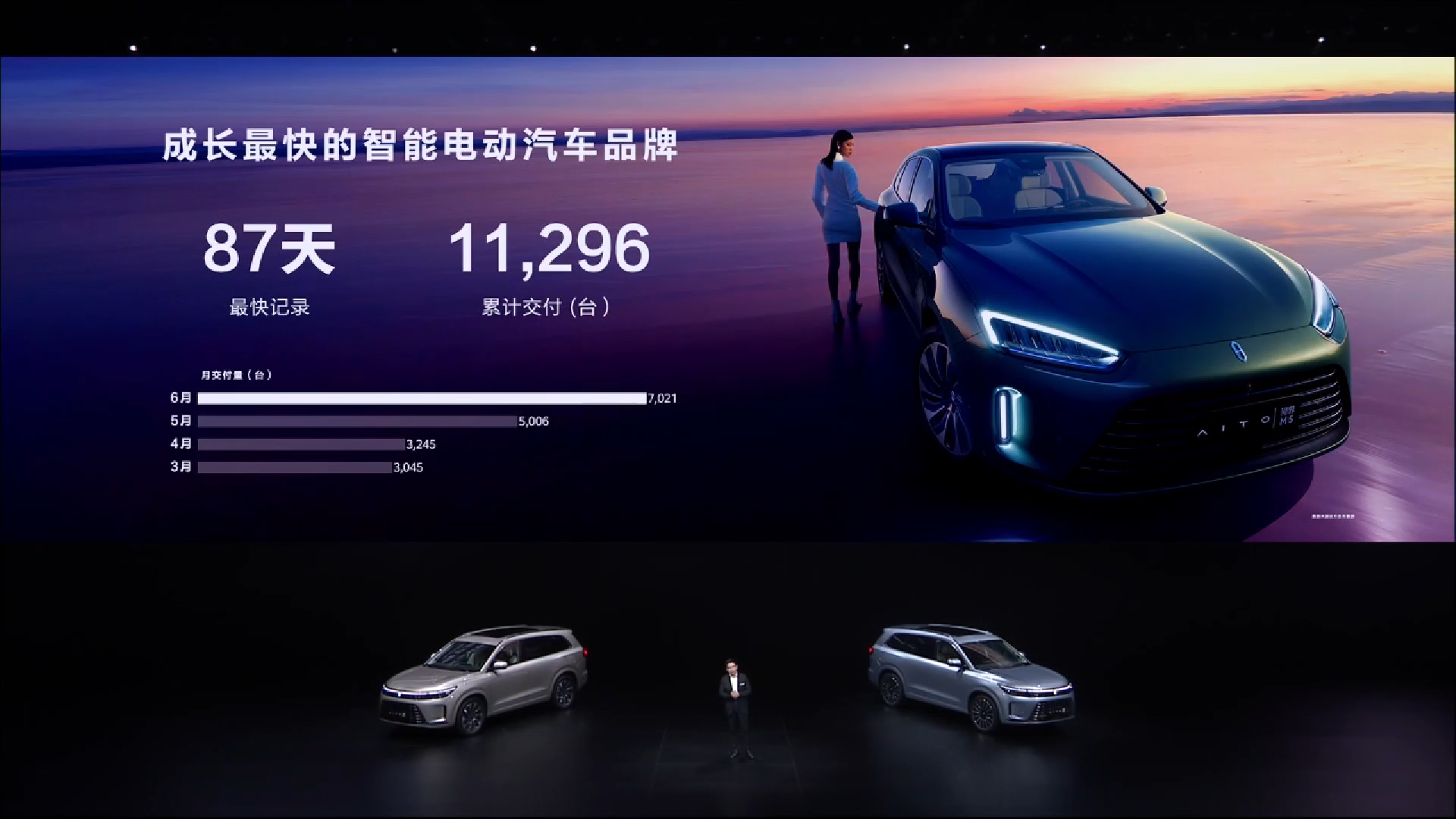 華為與賽力斯聯(lián)合打造的新車問界M7也是本次發(fā)布會的重點新品。問界M5作為高端汽車品牌AITO旗下首款車型,曾創(chuàng)下五月單月交付量破5000臺的紀錄,而M7系列定位豪華智慧大型電動SUV,將滿足更高需求,繼續(xù)引領(lǐng)汽車智能化、電動化趨勢。