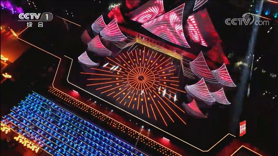 央視跨年夜從未讓人失望過,百平米的光祥AR地磚屏是銀河流淌的“源頭”,靈動且堅毅。LS高清屏被塑造成風帆,創意令人驚嘆!550米長度的TK臺階屏遍布巨輪各處,是引路的燈箱,也是光輝的來源。