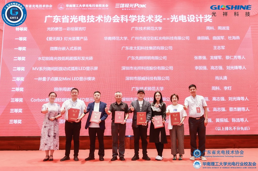 “廣東省光電技術協會科學技術獎”的設立,旨在表彰為光電行業科學技術進步做出突出貢獻的個人、組織,調動科學技術工作者的積極性和創造性,提高廣東光電行業科技創新能力,推動光電行業實現低碳可持續高質量發展。光祥科技有幸榮獲五大獎項,將再接再厲,繼續為國家光電行業貢獻力量。