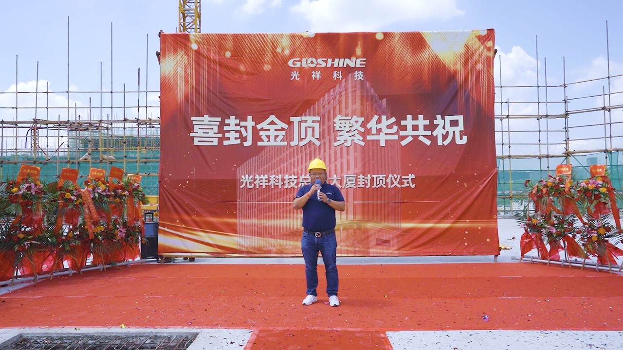 11時(shí)18分,儀式正式開(kāi)始,光祥科技張現(xiàn)峰董事長(zhǎng)發(fā)表講話,向前來(lái)參加封頂儀式的各位領(lǐng)導(dǎo)及朋友們致以最熱烈的歡迎,并感謝參與大廈建設(shè)的每一個(gè)人。