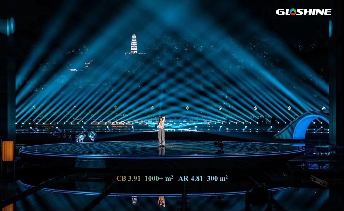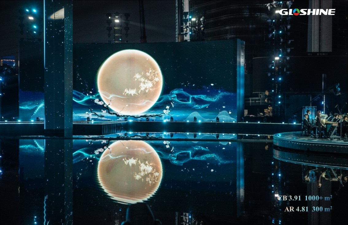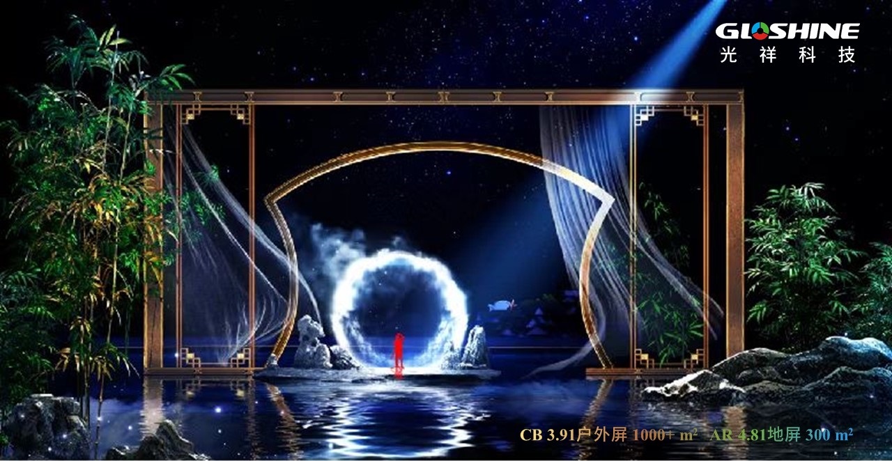 今年的中秋晚會延續一貫唯美浪漫,通過新穎精致的舞臺設計,應用1000多方CB碳纖維戶外屏和300方AR玻璃地屏塑造四個演區舞臺造型,呈現跨時空舞臺音樂藝術表演。