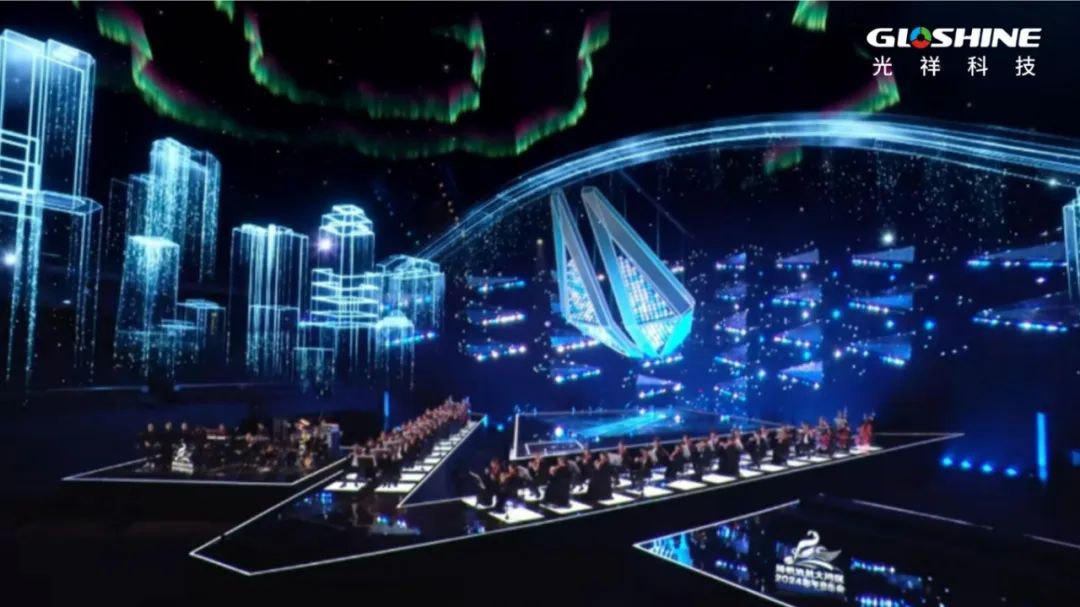 北京衛視《踏上新征程·2024跨年之夜》在國家速滑館“冰絲帶”舉行,應用1350平方光祥大屏,打造全國首創的“冰絲帶移動畫卷”舞美主視覺,利用3D立體機位雕琢光影,完美呈現音樂化境。