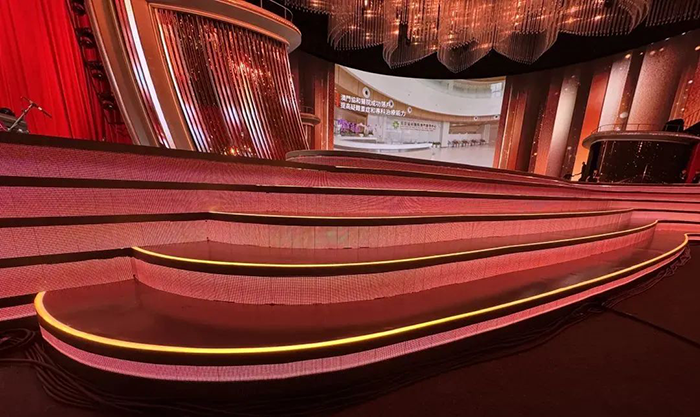 此次文藝晚會現(xiàn)場采用光祥多系列大屏,涵蓋TK臺階屏、AR地磚屏、DN高清屏以及VA透明屏等,總面積達1400平方米,這些大屏具有高穩(wěn)定性、高清晰度、超廣視角等卓越顯示效果,在數(shù)據(jù)備份和精確傳輸方面表現(xiàn)優(yōu)異,其先進技術保障了信息傳輸?shù)牧闶д`、零卡頓,確保了各類資料、影像、數(shù)據(jù)等信息穩(wěn)定流暢展示,為晚會順利進行奠定了堅實基礎。