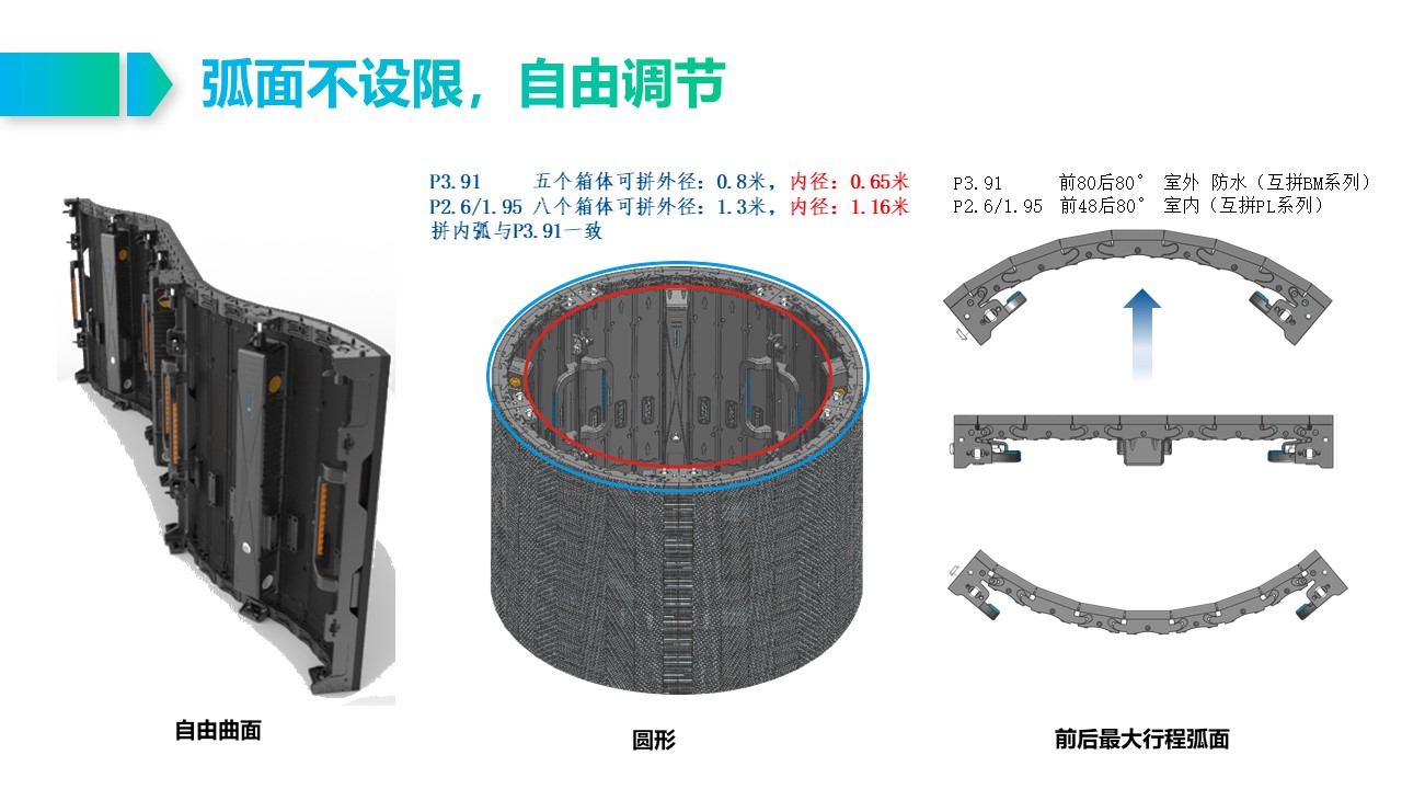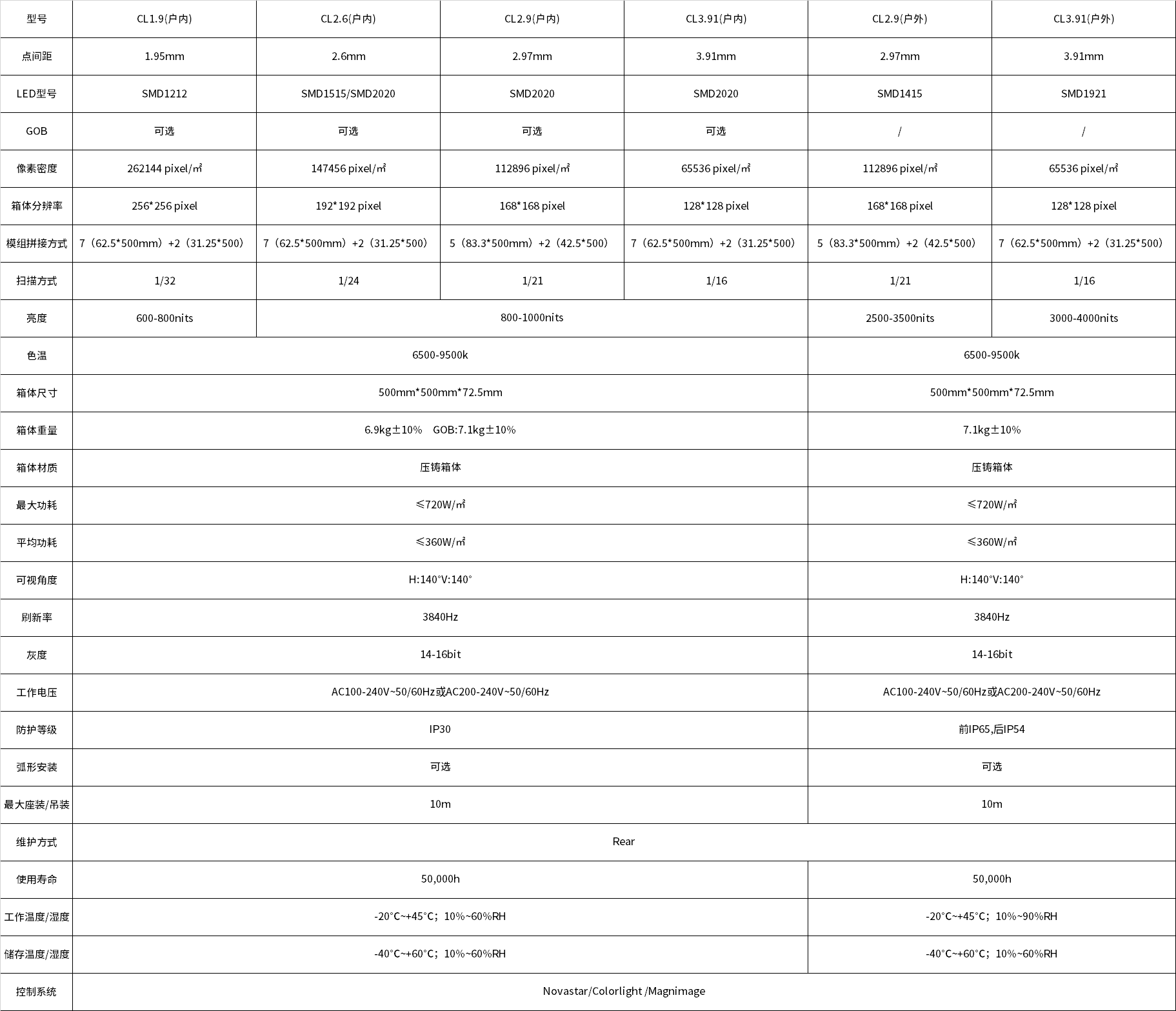 CL系列造型豐富,360°可視;支持“S”形拼接;五個箱體可拼圓柱;獨立控制盒設計,維護便捷。