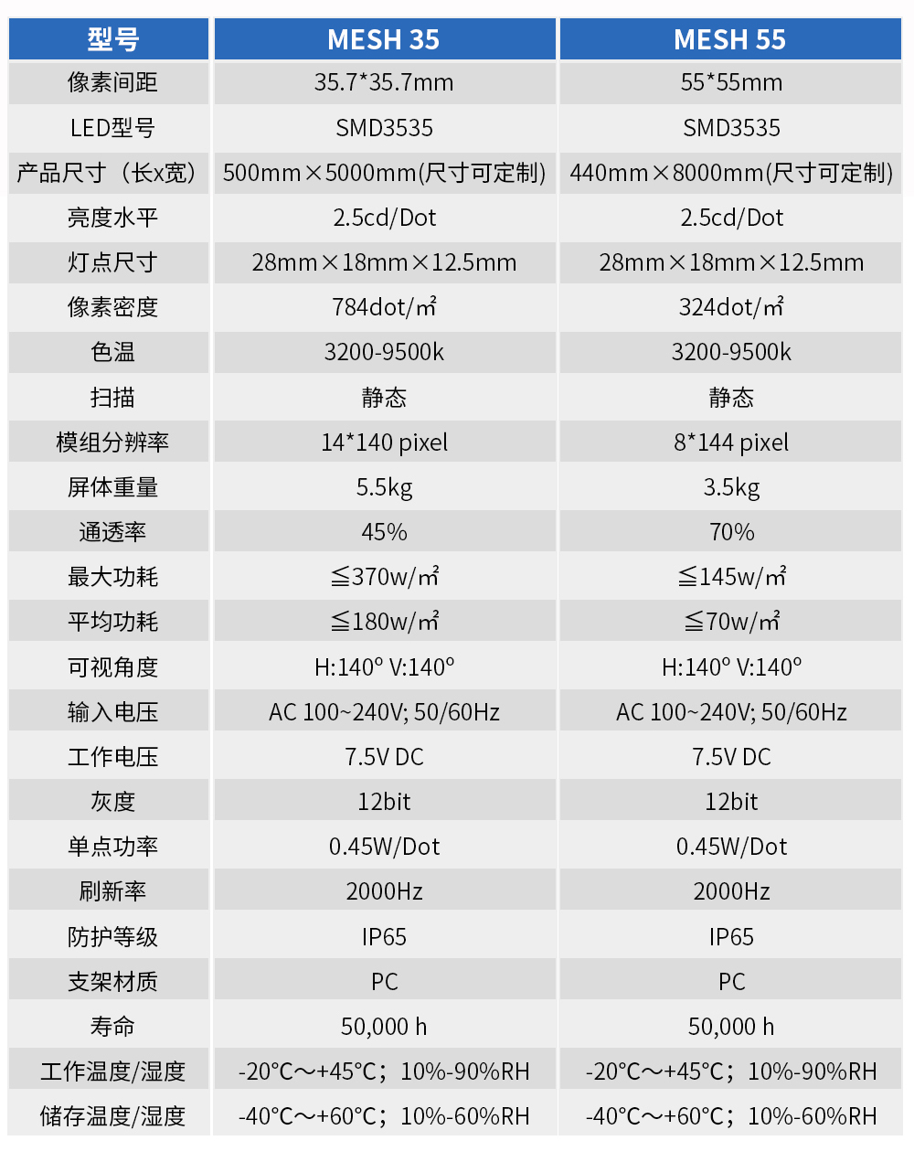 MESH系列材質(zhì)輕、軟、透,屏體重量僅5.5kg;單燈智能芯片,燈點(diǎn)尺寸28*18*12.5mm,每個(gè)燈獨(dú)立工作;雙色注塑模,透光角度更大;引線式外觀結(jié)構(gòu),美觀、維修方便;兩邊按壓扣設(shè)計(jì),連接屏方便快捷,可單燈固定在不規(guī)則圓柱上;1670萬種RGB合成真彩色,圖文色彩任意變化,可顯示圖像或視頻直播;支持像素間距35.7*35.7mm、55*55mm。