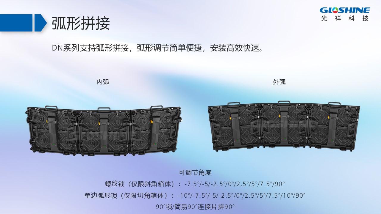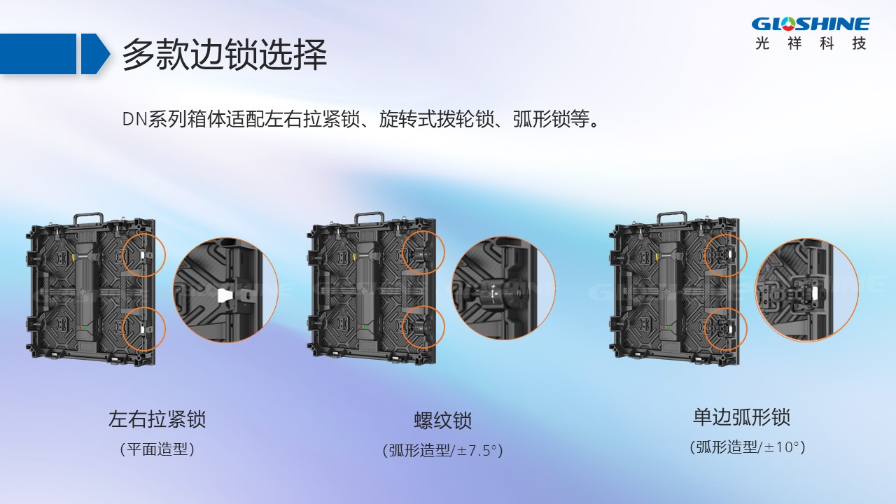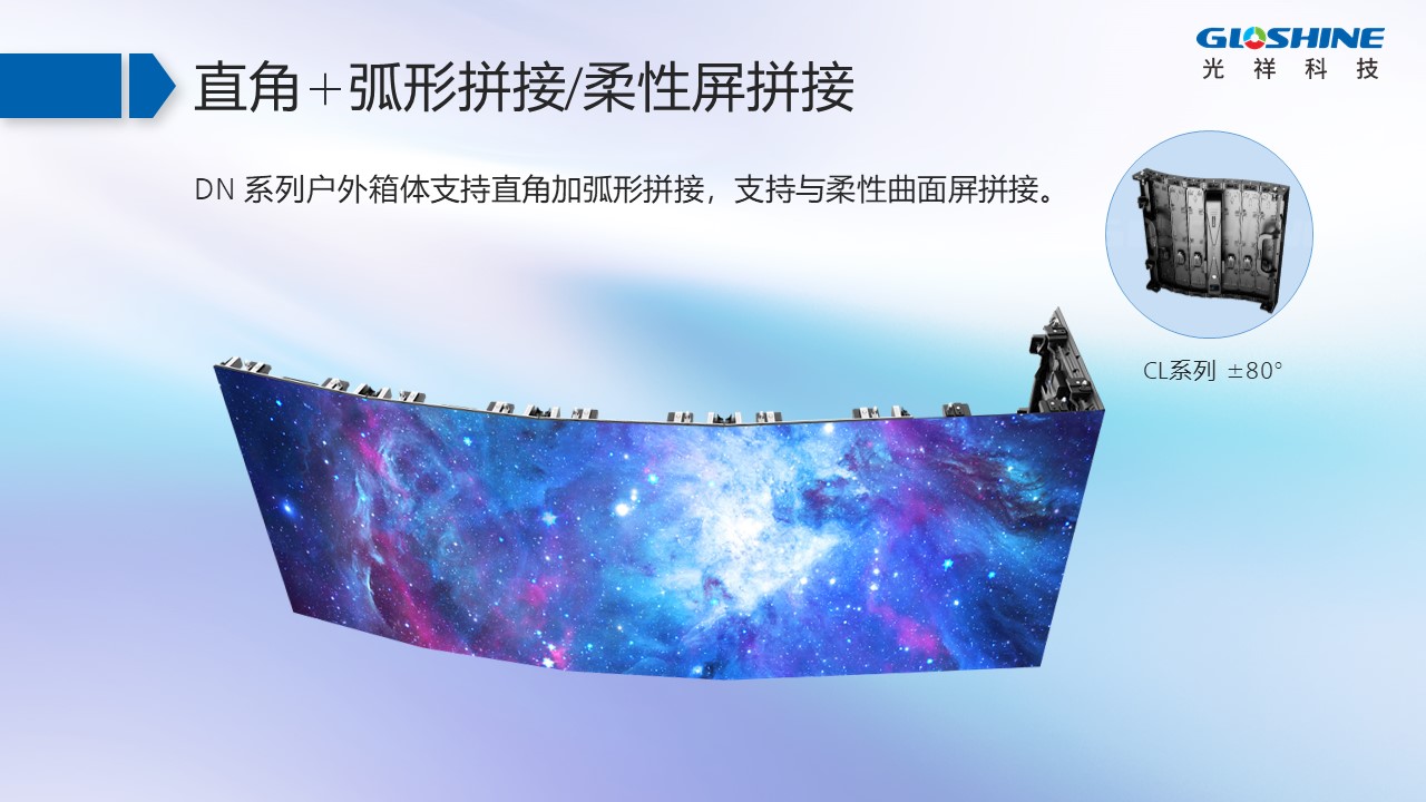 DN系列戶外高清LED顯示屏,超輕超薄箱體、經典工業設計、快速安裝維護、造型豐富多樣,支持直角/立柱/弧形等。