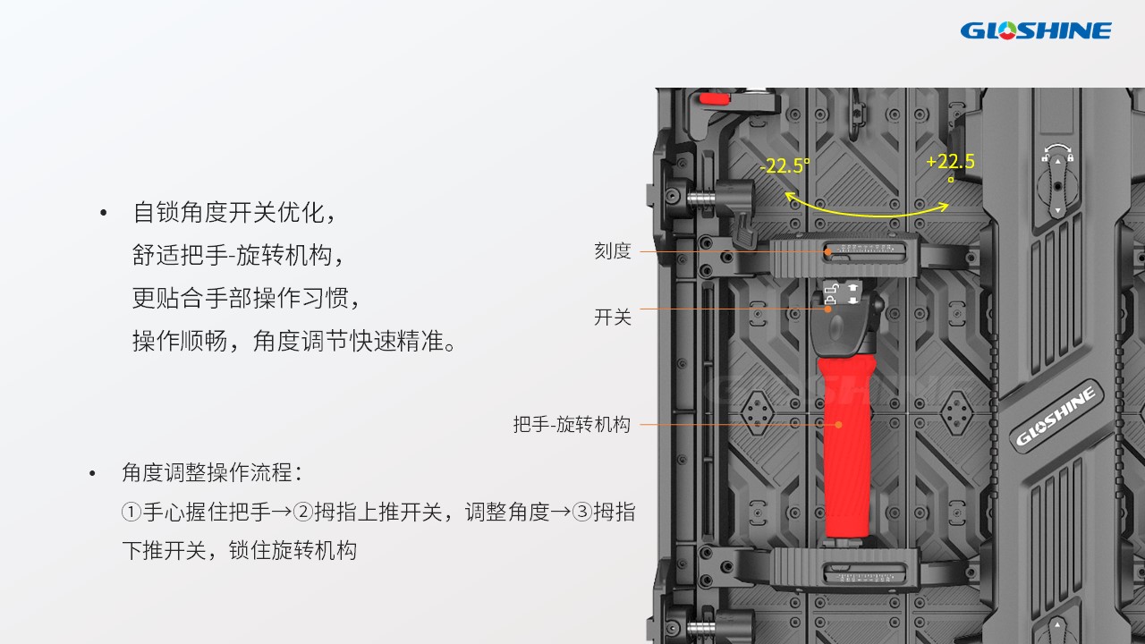 √ 創新自鎖機構 弧形調節更順暢