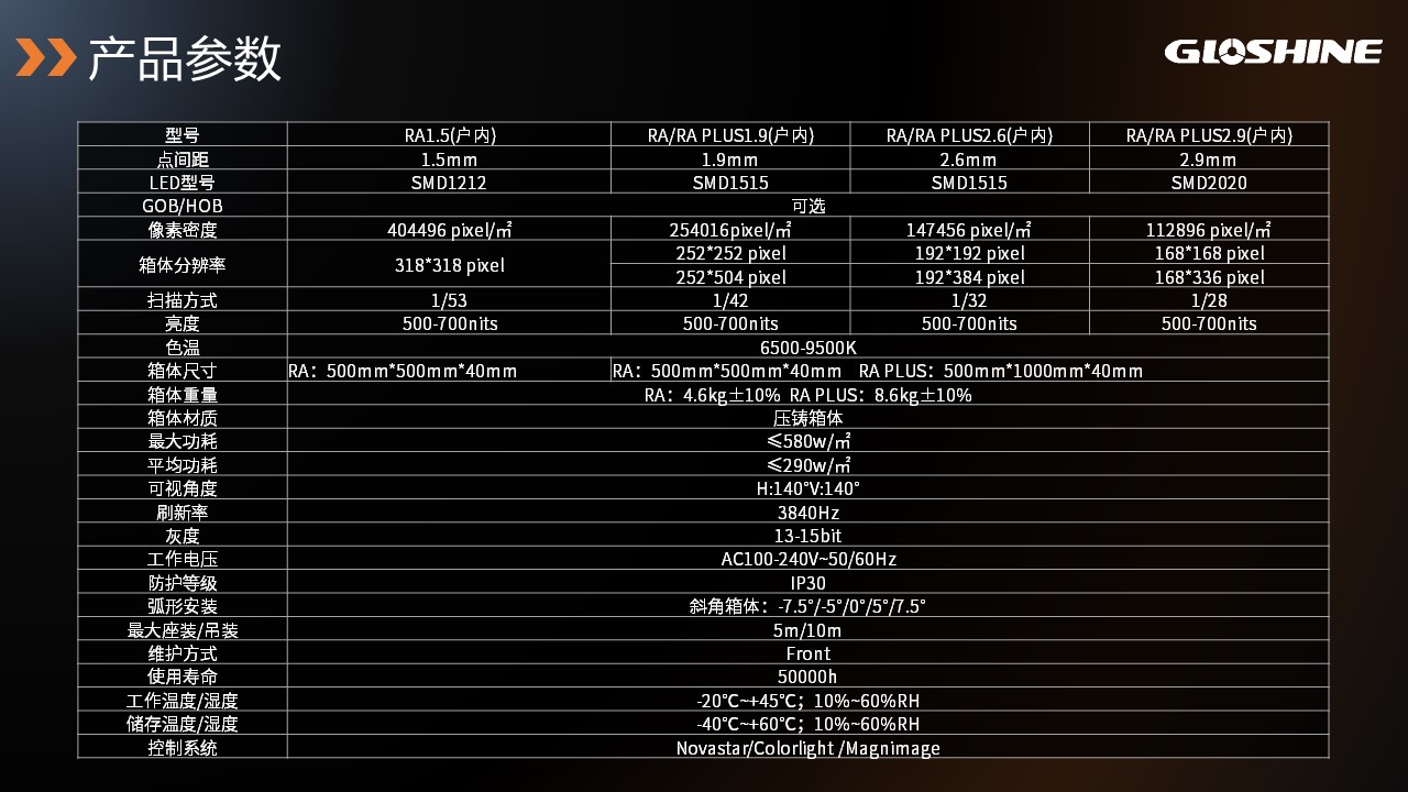 RA系列多功能超輕薄LED顯示屏,高性價比,箱體輕巧靈活,安裝方式多樣,滿足各種使用環境需求,可定制化背板,強化品牌識別度,全前維護設計,支持單人高效維護,支持弧形、直角拼接,造型多樣,創意百變。