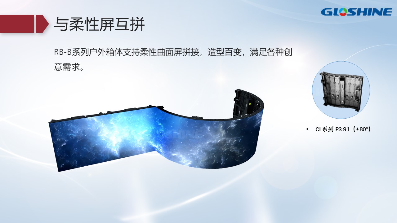 RB-B系列戶外高清LED顯示屏,箱體輕巧靈活,造型豐富,支持直角、立方柱、立方體、弧形拼接等,顯示高清細(xì)膩,色彩還原度高,適用于各種大型活動(dòng)、展覽展示、會(huì)議論壇等場景,是一款性價(jià)比極高的LED顯示產(chǎn)品。
